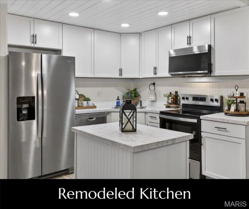 Retreat to 1400 Heritage Landing #203-a thoughtfully renovated 2-bedroom, 2-bathroom WALK-IN condominium offering an open floor plan and modern upgrades throughout. The completely redesigned Kitchen combines function and style with new 36 cabinetry & countertops, stylish hardware, custom backsplash, sink + faucet, and a custom island that anchors the space. The Kitchen opens seamlessly to the Living and Dining areas creating a place to gather or entertain. Both bathrooms have been fully updated with new white vanities, tub/shower and shower surrounds, sleek finishing touches: faucets, light fixtures, mirrors, shelving and hardware. A newly added Laundry Center is discreetly tucked off the Kitchen and adds a layer of everyday convenience without sacrificing style. Fresh wall and ceiling paint throughout enhance the bright, contemporary look, while durable LVP flooring at the main living areas and new carpet at the bedrooms, add comfort. Additional highlights include custom millwork, baseboards + trim throughout and unique shiplap ceiling at the Kitchen. The one-of-a-kind cubbie area in the Entry Foyer is the perfect combination of style and organization. Assigned carport, additional parking and NO STAIRS make this unit easy to access. New slider gives access to the deck that overlooks the community courtyard. Added bonus - secure closet with storage locker plus community Laundry Center. Heritage Garden is not just a condo complex it's a community. Check out the improvements! Centrally located in St. Charles with easy access to shopping, dining, recreation and major highways, this move-in-ready condo delivers quality craftsmanship, style, and low-maintenance living at a premium location.