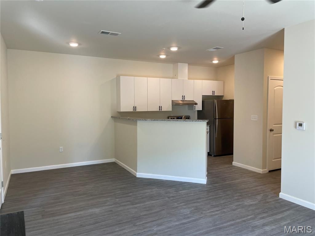 Special Grand Opening pricing - be one of the first to take advantage of this location and pricing... to live in a brand new home! Great opportunity to rent a brand new condo unit! Welcome to Harmony Meadows Apartment homes! The interior has the newest features such as 9 ft ceilings, canned lighting, double paneled doors, contemporary fixtures and luxury vinyl plank flooring. Kitchen has a deep sink and high faucet, roomy 38 cabinets have cooking ventilation built-in and beautiful granite countertops, Whirlpool stainless steel electric range, dishwasher and refrigerator. Dining area is suitable for your friends and has a pantry for your convenience. The open great room has an electric fireplace for your comfort and a nice view outside the sliding doors to the composite balcony, where storage is also available. Large primary bedroom with ceiling fan has a ensuite with adult size vanity and a walk-in closet. The second bedroom has a ceiling fan as well with a full bathroom within steps of the bedroom door. A fabulous layout that can give two parties privacy and it's also equipped with a fire sprinkler system for your safety. Fantastic location. Minutes to WingHaven and Hwy 40/64 / Technology Dr. Close to Hwys 364, 40/64 and 70! Minutes to restaurants, shopping, and many amenities. Walk to Kinetic Park! Must see and compare to other area apartments and rentals. This is by-far the most for your money and it has never been lived-in!!