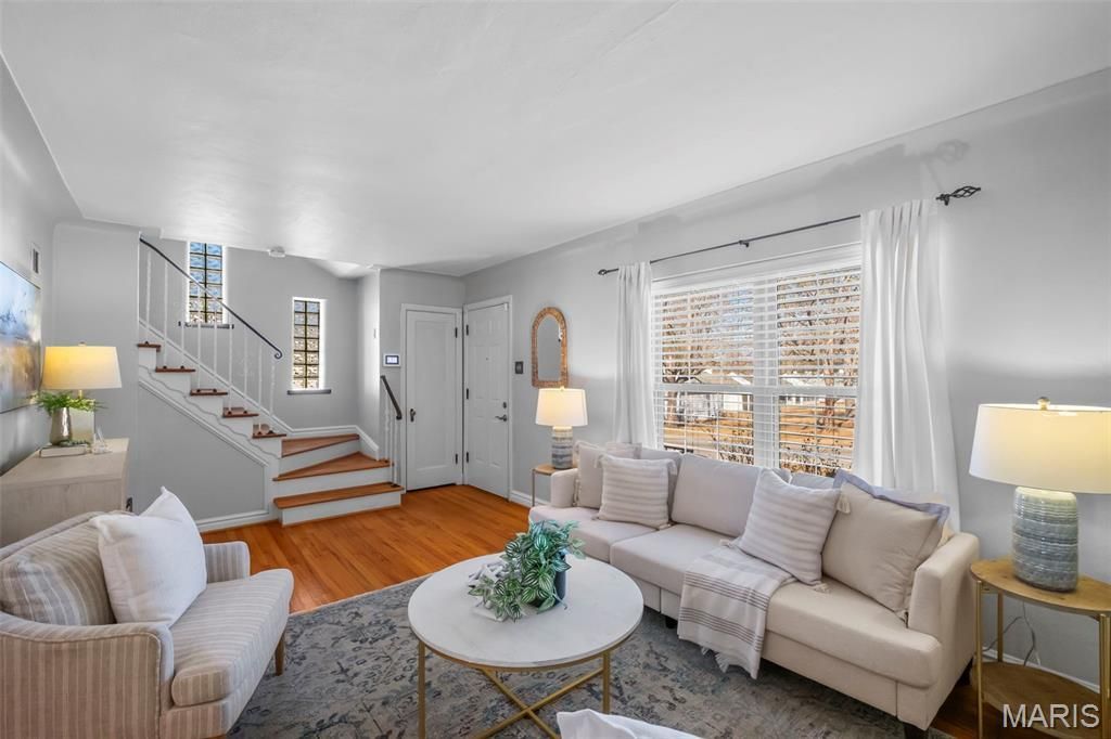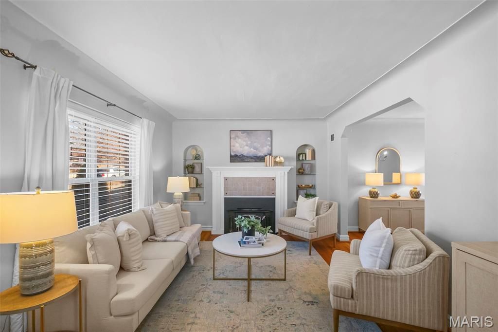 Welcome home to this beautifully maintained two-story brick home offering timeless charm located between Lindenwood Park and Francis Park in the desirable area of South City. Great curb appeal with well manicured landscaping and a classic brick exterior.Step inside to discover stunning wood floors that flow seamlessly throughout. The inviting living room with built in display shelves features a cozy wood-burning fireplace - perfect for relaxing evenings or gathering with friends and family. Large dining room separates the living area from the bright kitchen equipped with stainless steel appliances. Upstairs you will find a very spacious primary bedroom, a second bedroom both with ample closet space and an updated full bathroom.Enjoy your morning coffee or evening breeze from the bright sunporch overlooking the level, fenced backyard - ideal for pets, play, or entertaining.Additional highlights include a detached garage and a clean, dry, partially finished basement complete with a bonus recreation room that could easily be converted into an additional bedroom or home office. Also walk-up access to backyard, generous storage and sump pump.Located in a charming neighborhood close to parks, local entertainment, shops and restaurants this home offers both tranquility and convenience to access everything you need.Don't miss the opportunity to own this move-in-ready gem that perfectly blends character, comfort, and location.