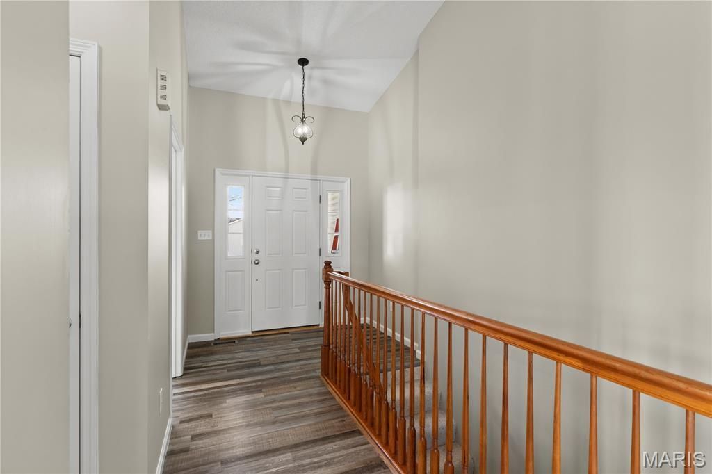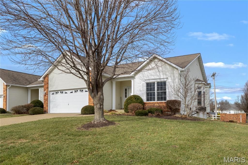 This beautiful 2 bedroom, 2 bath, 2-car Villa located in the heart of Dardenne Prairie is ready for you to make it home. The large open floorplan is conducive to all of your needs. This entire unit has been freshly painted throughout including walls, trim and doors. The open Great room to Kitchen and Breakfast rm offers a vaulted ceiling, cozy gas F/P, laminate vinyl plank flooring, new LED (color changing) Smart ceiling fan, and a large bay window. The Kitchen features 42 cabinets w/plenty of storage, new track light, and all stainless steel appliances. New microwave and smooth top range, dishwasher and refrigerator stays. The primary bedroom w/bay window has new carpet, LED ceiling fan, separate ensuite with new luxury vinyl, new comfort height toilet, and a large walk-in closet. The laundry room with new luxury vinyl has plenty of space to either stack your washer/dryer units or place them side by side. Bedroom 2 also has new carpeting, LED ceiling fan, plenty of closet space and flanks the Hall bath. The new carpet on the stairs to the huge unfinished lower level with 4 large lookout windows and bath rough-in is ready for your finishing touches. A new screen door on the front entryway and the large covered deck in the back with ceiling fan make those spring days so much more enjoyable. New garage door opener. Close to 3 major highways, shopping, pharmacies, grocery and more. Community offers lakes, walking trails, 3 swimming pools, and the well known Links of Dardenne golf course. Don't miss your opportunity to view this great villa today.