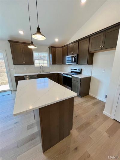 Brand new ranch-style home in the sought-after Lake Labadie Estates subdivision. This contemporary property combines comfort and convenience 3 bedrooms and 2 bathrooms all conveniently located on the main level for seamless single-floor living.When completed, the home will boast a spacious open-concept design with luxurious touches such as quartz countertops, a stylish kitchen island, custom cabinetry, and hard surface floors, perfectly blending functionality and modern style. The basement includes rough-in plumbing, offering flexibility for a future bathroom and additional customization to suit your needs.Access to 6-acre subdivision lake.Don't miss the chance to make this stunning new house your dream home.
