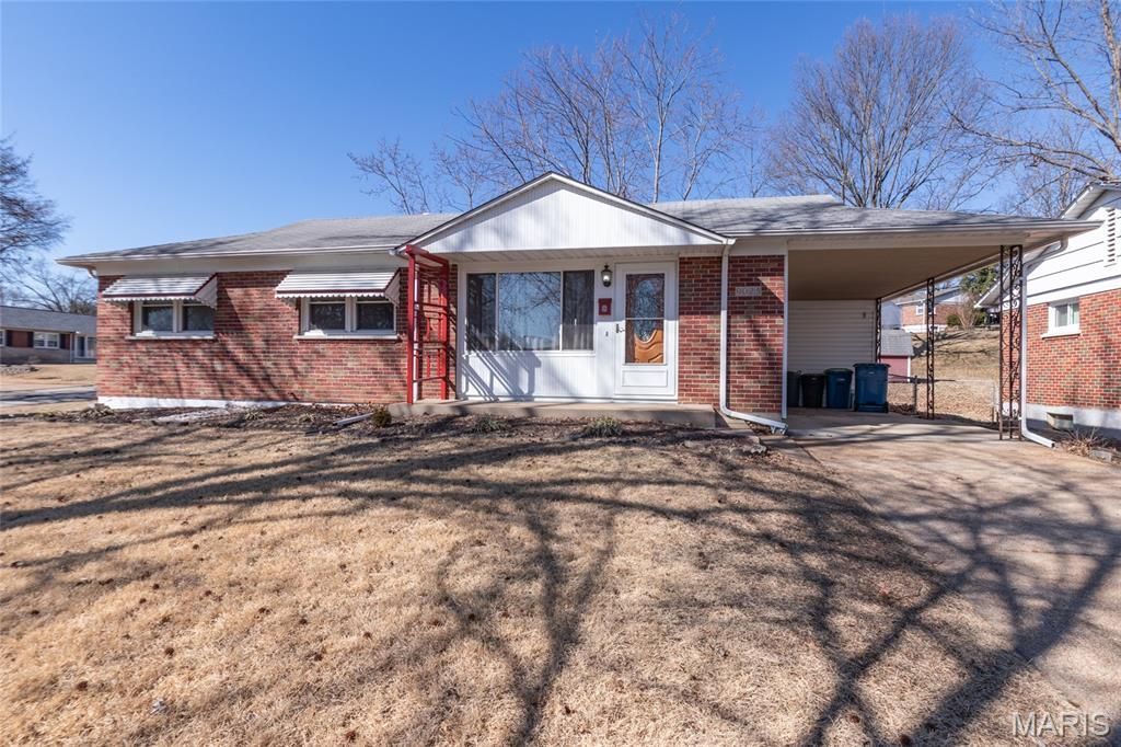 Well maintained 3 bedroom 1.5 bath, brick ranch conveniently located in desirable Indian Hills subdivision. The home features a low maintenance exterior and is located on a large level fenced corner lot with mature trees. There is a large low deck accessible from the kitchen and includes a patio set. There are hardwood floors in all three bedrooms. Both the full bath and half bath have been updated. All the appliances are included. The furnace, central A/C and the electric panel have been updated. The refrigerator and range in kitchen and the washer, dryer and freezer on the lower level stay along with the cedar lined chest. The lower level is partially finished with a recreation room and two additional bonus rooms that could be used as bedrooms or office. There are ample storage areas off the lower level recreation area. The home has passed St. Louis County Occupancy inspection. A large storage area connected to the house is accessible from the carport or the rear fenced yard.